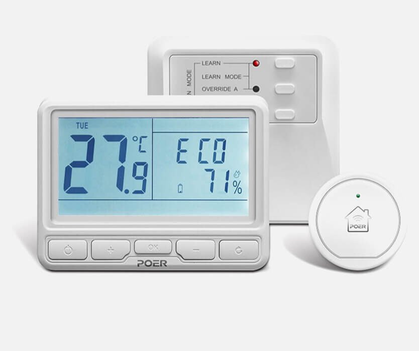 PTC10, PTR10 i PTG10 su digitalni sobni termostati dizajnirani za preciznu kontrolu temperature u prostorijama. Svaki model nudi jednostavno podešavanje i energetske uštede. PTC10 je osnovni model za jednostavno grejanje i hlađenje, dok PTR10 i PTG10 omogućavaju pametno programiranje i opcije za daljinsko upravljanje, pružajući maksimalnu kontrolu i efikasnost u potrošnji energije.